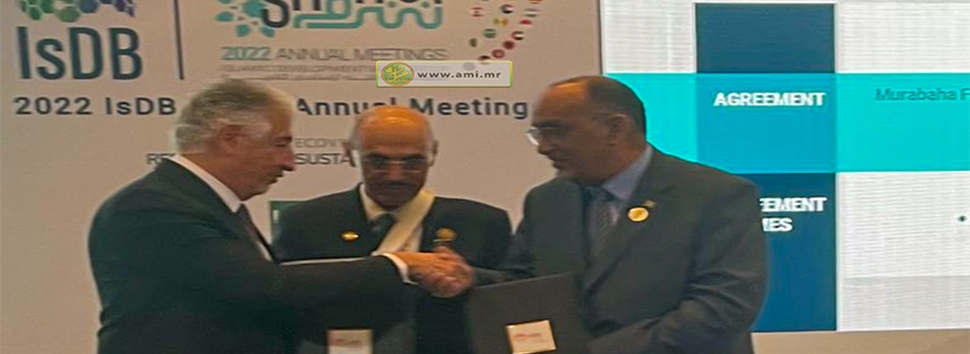 En marge des assemblées annuelles du groupe de la Banque islamique de développement, qui se tiennent actuellement à Charm el-Cheikh, en Égypte, le ministre des Finances, M. Isselmou Ould Mohamed Mbady, a signé avec M. Hani Salem Sonbol, Directeur général de la Société internationale islamique de financement du commerce (ITFC), le financement d’une ligne de crédit de 50 millions de dollars américains au profit de la société Mauritanienne d’Électricité (SOMELEC). Il s'agit d'une opération financière sous la forme d'une mourabaha qui permettra à la SOMELEC d'importer des carburants.